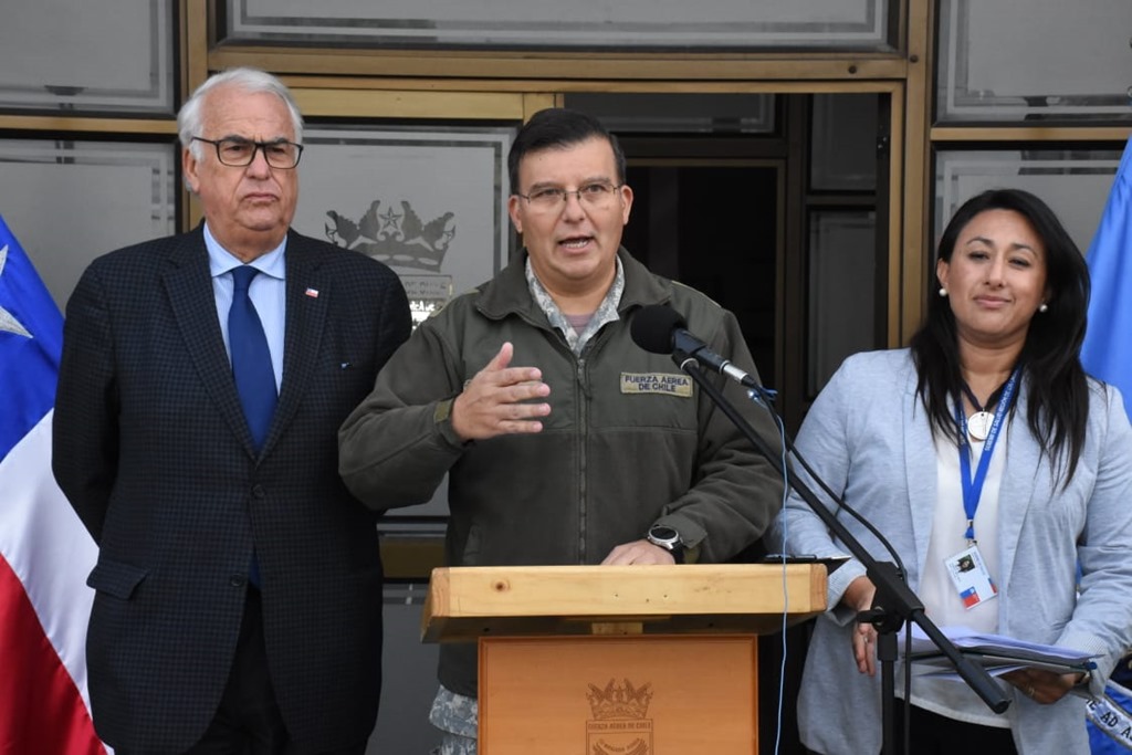 El Intendente Harry Jürgensen junto al General de Brigada Aérea (A) Cristian Eguía Calvo, explicó los alcances del Estado de Excepción Constitucional de Catástrofe en la región, que apoyará el funcionamiento de los hospitales, transporte, distribución de alimentos y productos para la región.