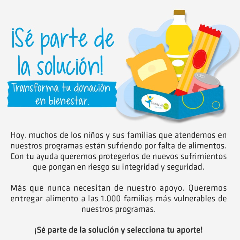 “Sé parte de la solución” es la invitación que hace Fundación Ciudad del Niño para ir en ayuda de las mil familias más vulnerables que atiende.