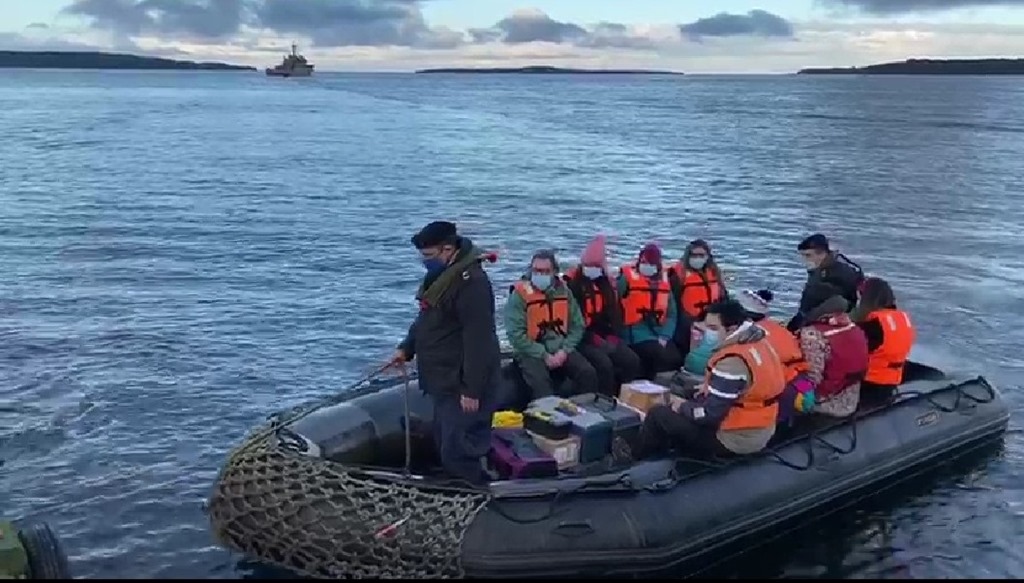Tras realizar un importante apoyo cívico en la Escuela rural de Chuit, la dotación del “Videla” también en su paso por las Islas Desertores llevó a cabo otro especial apoyo, el traslado desde Puerto Montt al área de ayuda social, “finalmente entregamos en las Islas del Archipiélago un total de 258 cajas, que benefician a 133 familias, compuestas por alimentos para Chile, elementos de protección personal (guantes, mascarillas y alcohol gel) y material didáctico para 30 niños de 0 a 9 años de edad, este apoyo fue organizado por la Secretaría Ministerial de Desarrollo Social y Familia, el Gobierno Regional Los Lagos y la campaña Comprometidos por el Sur” destacó el Comandante González.