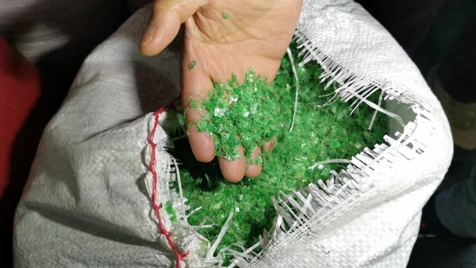 gran cantidad de plástico que ya pasó por este proceso de chipeado,