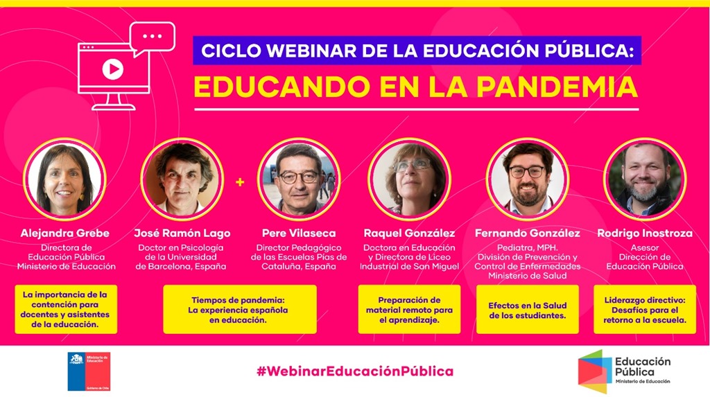 Con el objetivo de incentivar la conversación entre docentes, asistentes de la educación, directivos y apoderados frente a los desafíos de la educación en la pandemia, la Dirección de Educación Pública inaugura el ciclo de conferencias webinar “Educando en la Pandemia”.