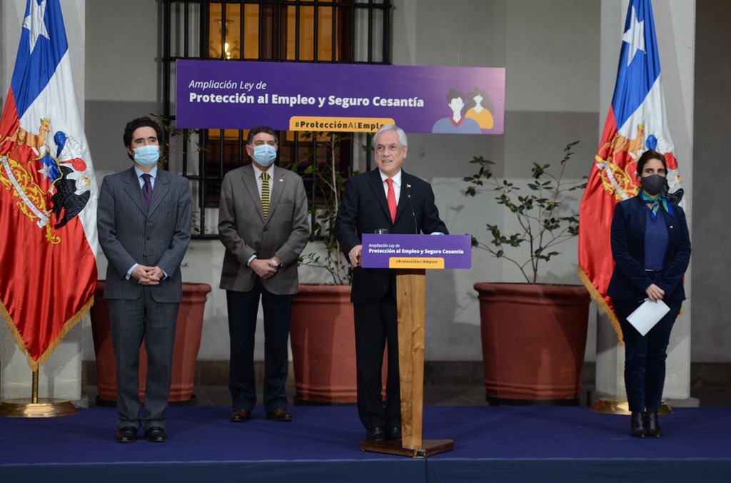 “Este proyecto, pensando en los más vulnerables, también establece un piso absoluto, un mínimo de $225 mil de pago (del Seguro de Cesantía) a los trabajadores. De esta forma, esta mejoría en la Ley significa más y mejor protección para los trabajadores chilenos que por cualquier razón pierdan sus empleos” en los tiempos de emergencia sanitaria que vive el país, agregó el Presidente Piñera.