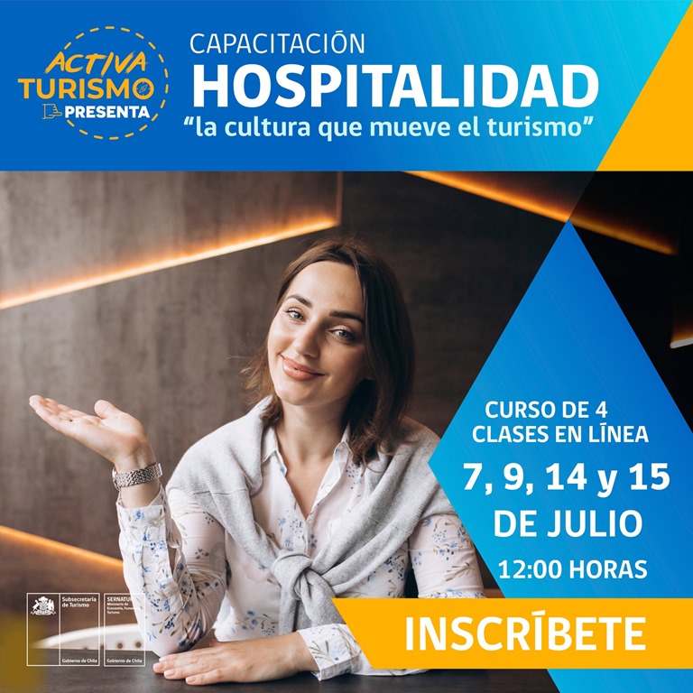 “Hospitalidad: la cultura que mueve el turismo”, se inició este martes 7 de julio en modalidad e-learning y se repetirá el 9, 14 y 15 de este mes a las 12:00 horas, enmarcado en el programa Activa Turismo.