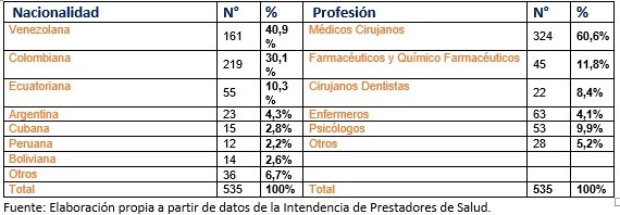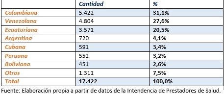 Así lo muestran datos de la Intendencia de Prestadores de Salud procesados por el Servicio Jesuita a Migrantes. La mayoría de quienes se incorporaron desde marzo son de nacionalidad venezolana y colombiana. En cuanto al campo en que se insertan, el 61% lo ha hecho como médico cirujano.