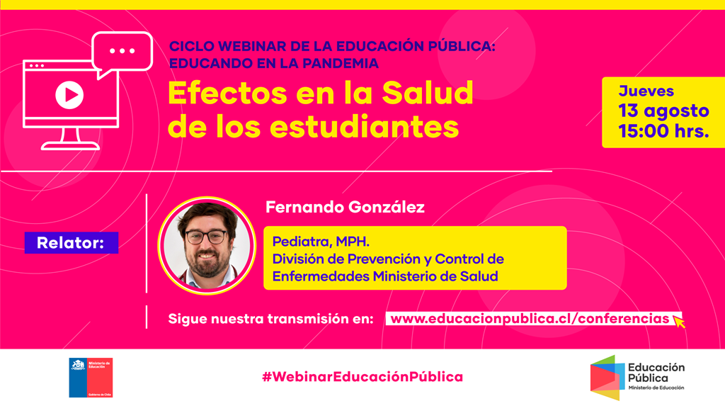 La cita será el próximo jueves 13 de agosto a las 15:00 horas, donde directivos, docentes, asistentes de la educación, apoderados y público en general podrán conectarse a la charla con el pediatra y Magíster en Salud Pública a través de www.educacionpublica.cl/conferencias.