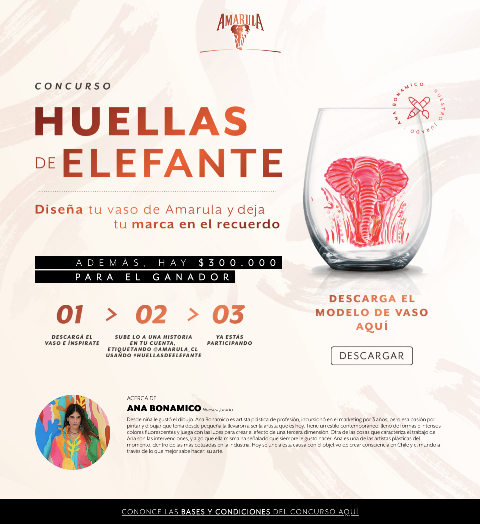 #HuellasDeElefante se llama la iniciativa que invita a artistas o aficionados a crear la propuesta que irá plasmada en un vaso Amarula, que será parte de un paquete especial que el licor del elefante distribuirá a nivel nacional.