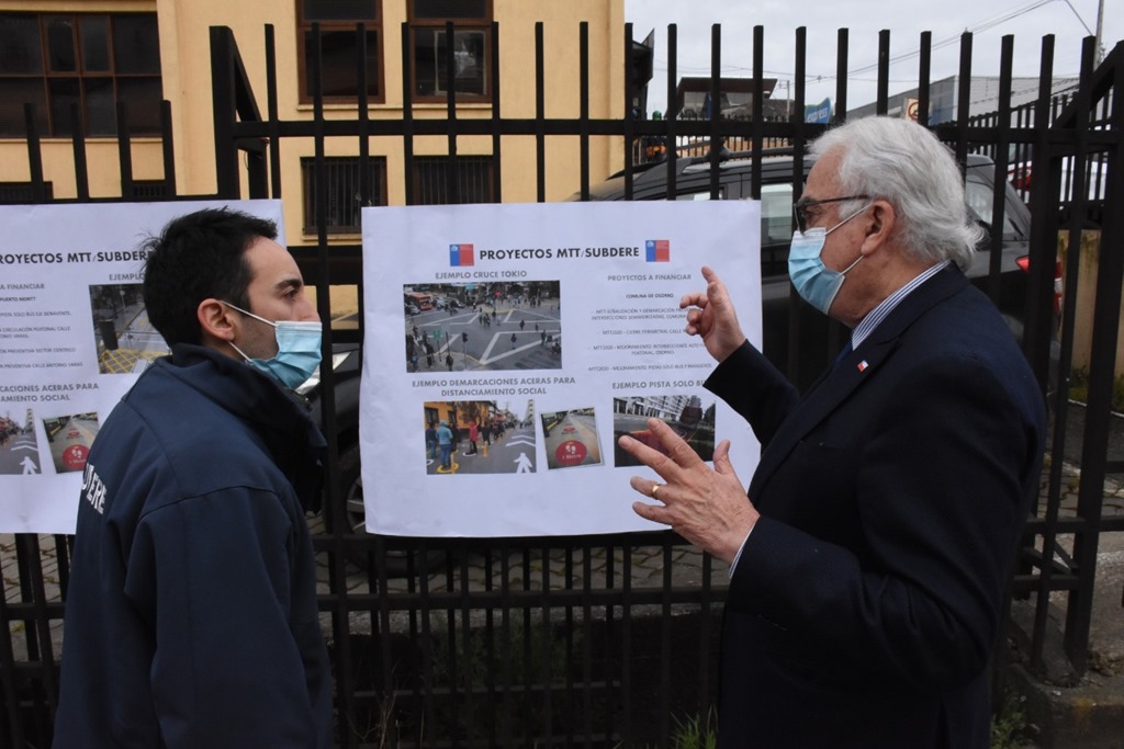 El seremi de Transportes y Telecomunicaciones, Nicolás Céspedes, explicó que "en la región los proyectos buscan generar espacios más seguros para la movilidad de las personas. Estos incluyen el mejoramiento de cruces peatonales tipo Tokio, pistas solo bus para un mejor servicio más seguro de transporte público, cierre de calles destinas a uso exclusivo peatonal y demarcación de los espacios públicos para mantener la distancia física durante el desplazamiento peatonal. Así es como en Osorno trabajemos en el cierre de Calle Ramírez como vía peatonal y la demarcación de distancia física. En Puerto Montt la implementación de cruces Tokio como el que ya está listo en Cauquenes con Urmeneta, pistas solo bus como la proyectada en Av. Benavente y el cierre de Antonio Varas como peatonal. En Castro el mejoramiento cruces peatonales cebra y semaforizados y en Quellón demarcación distancia física en terminal, cesfam, feria artesanal, bancos y notarias".