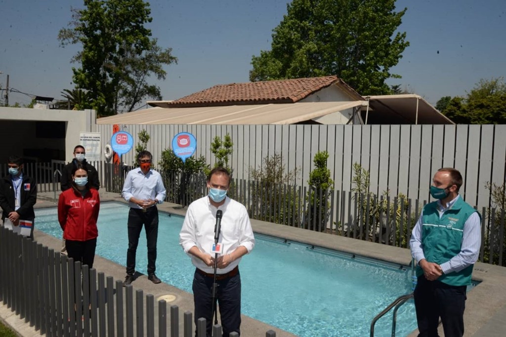 Durante esta mañana el Ministro de Vivienda y Urbanismo, Felipe Ward, junto a la Seremi de Salud de la RM, Paula Labra, el director de Parque Metropolitano, Martín Andrade, el alcalde de La Reina, José Manuel Palacios y el gerente comercial de Comunidad Feliz, David Peña, presentaron el “Protocolo de manejo de prevención ante Covid-19 en piscinas”. En la oportunidad, el Titular del Minvu y las autoridades visitaron el condominio Terranova de La Reina, donde explicaron la aplicación de esta normativa durante la época estival que se avecina.