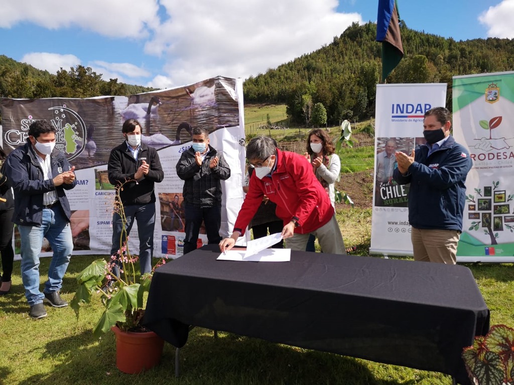 Hasta Quellón, en la Isla Grande de Chiloé, se trasladó el director nacional de INDAP, Carlos Recondo, para asistir a la firma de un convenio de cooperación que promueve nuevas instancias de comercialización para los pequeños agricultores de esta comuna de la región de Los Lagos.