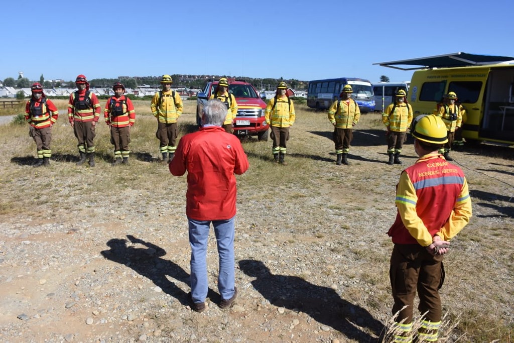 El Intendente de la Región de Los Lagos, Carlos Geisse, acompañado de los directores regionales de Conaf, Jorge Aichele y ONEMI, Alejandro Verges, compartieron con brigadistas forestales y entregaron detalles de cómo se prepara la región ante la alerta temprana por altas temperaturas durante los próximos días.
