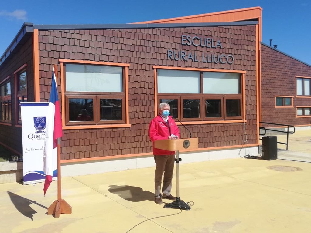 Enfatizando sobre el compromiso de Gobierno por el fortalecimiento de la educación rural, Intendente Carlos Geisse participó este martes de la ceremonia de inauguración de la Escuela Básica Lliuco, en la comuna de Quemchi financiada con fondos del Gobierno Regional de Los Lagos.