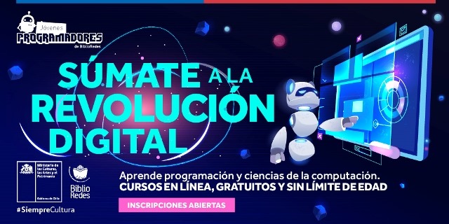 Una nueva oportunidad se inicia para que todas y todos puedan aprender, crear y digitalizar sus ideas ¿Cómo? A través de Jóvenes Programadores (www.jovenesprogramadores.cl), una iniciativa del Programa BiblioRedes del Servicio Nacional del Patrimonio Cultural, dependiente del Ministerio de las Culturas, las Artes y el Patrimonio. Los interesados sólo deben completar la ficha de inscripción desde este 15 de marzo (a las 12.00 horas) en www.jovenesprogramadores.cl y luego elegir el módulo por el cual comenzar. Hay 25 mil cupos disponibles.