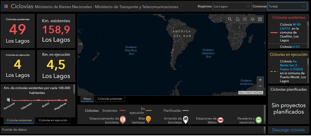 La moderna herramienta digital, www.ciclovias.visorterritorial.cl, entrega información detallada de las 49 ciclovías de la región de Los Lagos.