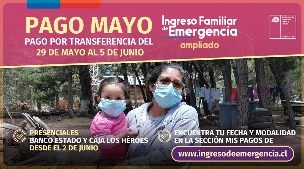 Una buena noticia para las familias que se han visto afectadas económicamente, producto de la crisis sanitaria, entregó la Seremi de Desarrollo Social y Familia, Soraya Said Teuber junto al Intendente Regional, Carlos Geisse, se trata del inicio del pago por transferencias electrónicas del IFE Ampliado de mayo, entre el 29 de mayo y el 5 de junio, mientras que el pago de manera presencial será a través de las cajas del Banco Estado y Caja de Compensación Los Héroes, desde el 2 de junio.