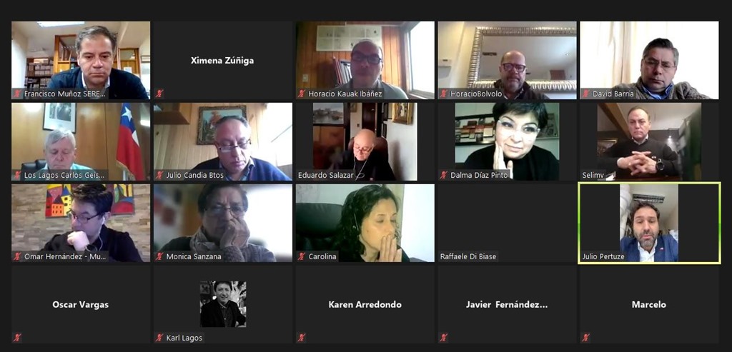 Por medio de una cita virtual, el subsecretario de Economía Julio Pertuzé, junto al Delegado Presidencial Regional, Carlos Geisse y el Seremi de Economía, Francisco Muñoz se reunieron con representantes de las cámaras de Comercio y Turismo de Ancud, Castro, Puerto Montt, Puerto Varas, Puyehue, Fresia, Osorno y la Multigremial de Los Lagos, con el objetivo de escuchar las inquietudes de los gremios, difundir las iniciativas hacia la reactivación económica y analizar las nuevas medidas del plan paso a paso.