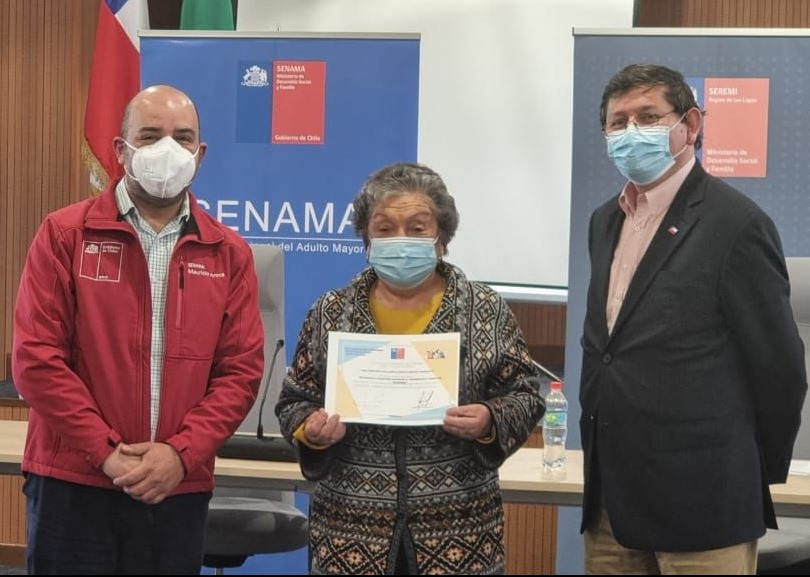 El Seremi Desarrollo Social y Familia, Manuel Obando Vargas junto al Coordinador Regional de SENAMA, Mauricio Aroca y adultos mayores representantes de clubes y organizaciones llevaron a cabo la ceremonia de adjudicación de los recursos del Fondo Nacional del Adulto Mayor “Hernán Zapata Farías” 2021, que este año entregó recursos por $ 211.168.480 en la región de Los Lagos. En total, 230 agrupaciones de adultos mayores, entre clubes, uniones comunales, federaciones y confederaciones, resultaron adjudicadas y podrán ejecutar sus proyectos gracias a los recursos obtenidos a través de este fondo concursable de SENAMA.