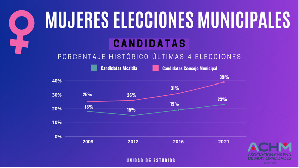 Según los datos de la Asociación Chilena de Municipalidades (ACHM) y de acuerdo a las últimas elecciones municipales, las mujeres siguen siendo minoritarias en los cargos de alcaldesas y concejalas.