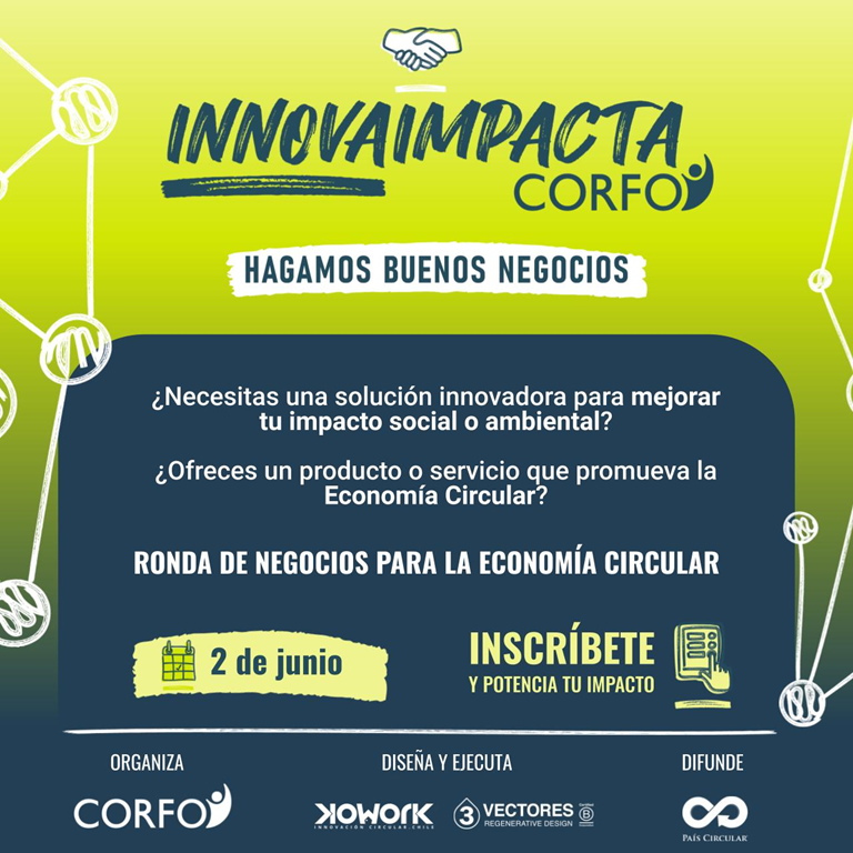 Los interesados en esta ronda de negocios pueden informarse en https://innovaimpacta.cl/ y registrarse en https://innovaimpacta.cl/ronda-economia-circular/