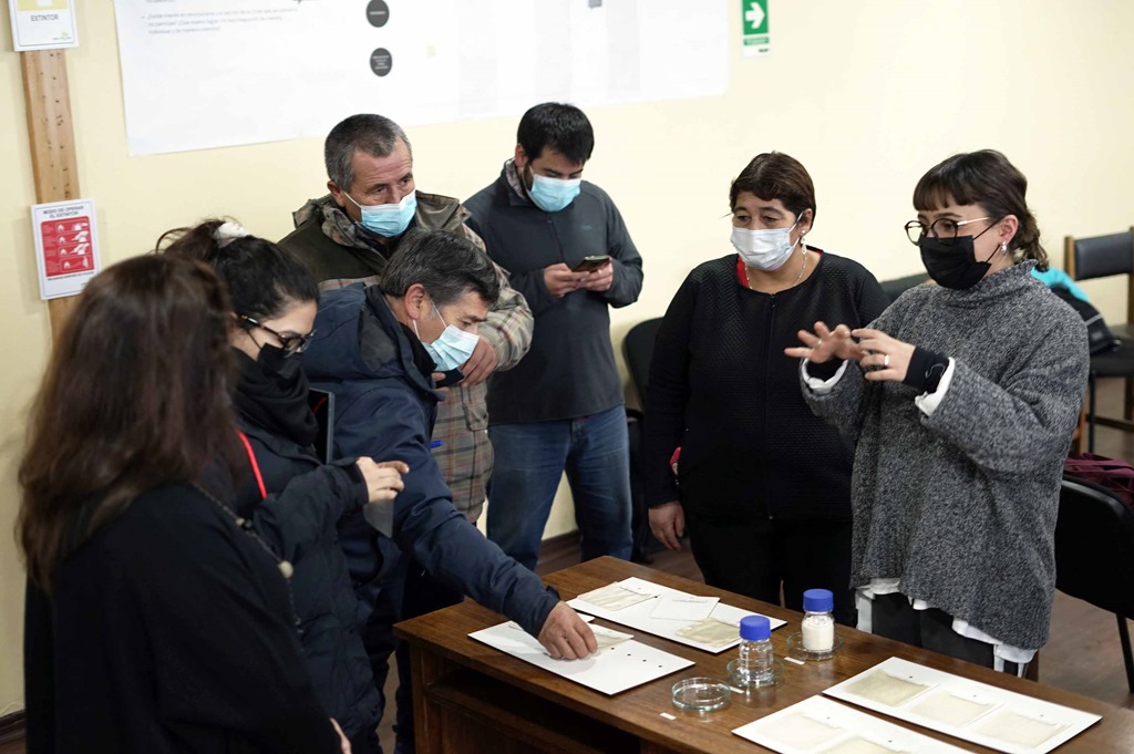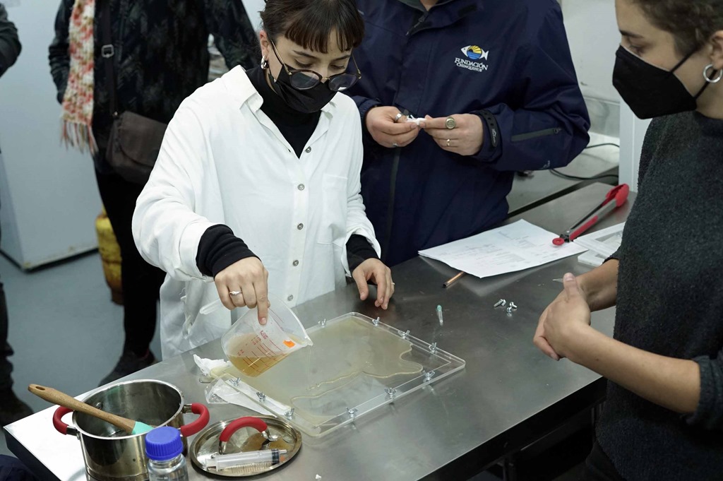 El taller finalizó con un modelo práctico de elaboración de plásticos a partir de muestras de algas en la sala de prototipaje de productos del mar Ruka Iyael, la que se ubica en dependencias de Fundación Chinquihue.