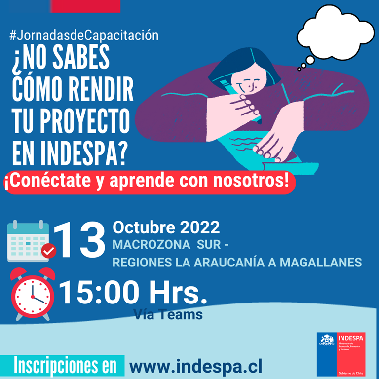 Las inscripciones se realizan a través del sitio www.indespa.cl o vía correo escribiendo a [email protected] Estas capacitaciones contemplan una visión general del procedimiento de rendición de gastos, los errores más frecuentes e incorporan una ronda de atención de consultas de las y los participantes.