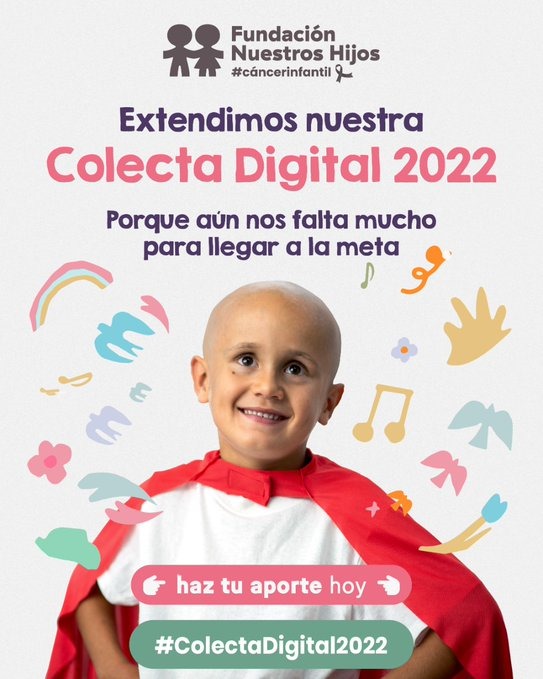 Cada año se diagnostica a 500 niños, niñas y adolescentes con algún tipo de cáncer en nuestro país, donde los tres tipos más comunes son leucemia, tumores del sistema nervioso central y linfomas. Para continuar la labor de entregar atención, tratamientos de rehabilitación y cuidados dignos, es que Fundación Nuestros Hijos se encuentra difundiendo su Colecta Digital 2022, que ampliará su plazo de campaña debido a que no han logrado llegar a la meta de 150 millones de pesos.