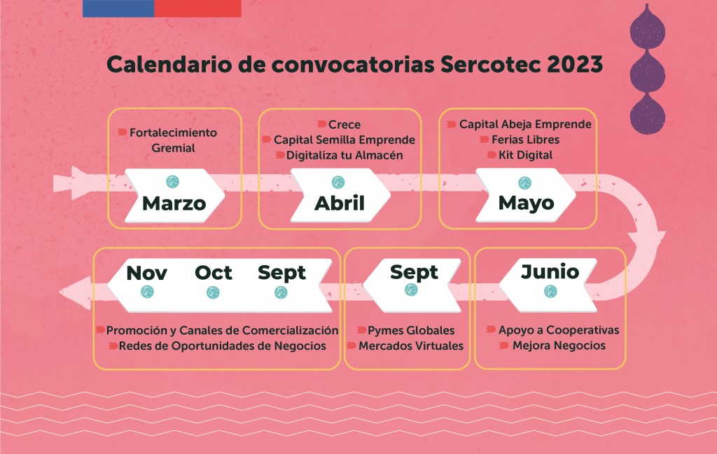 El Servicio de Cooperación Técnica, Sercotec, anunció el calendario de convocatorias 2023 para sus fondos concursables dirigidos a pymes y emprendimientos, buscando facilitar la preparación de quienes estén pensando en postular a las diversas líneas de apoyo que ofrece la entidad.