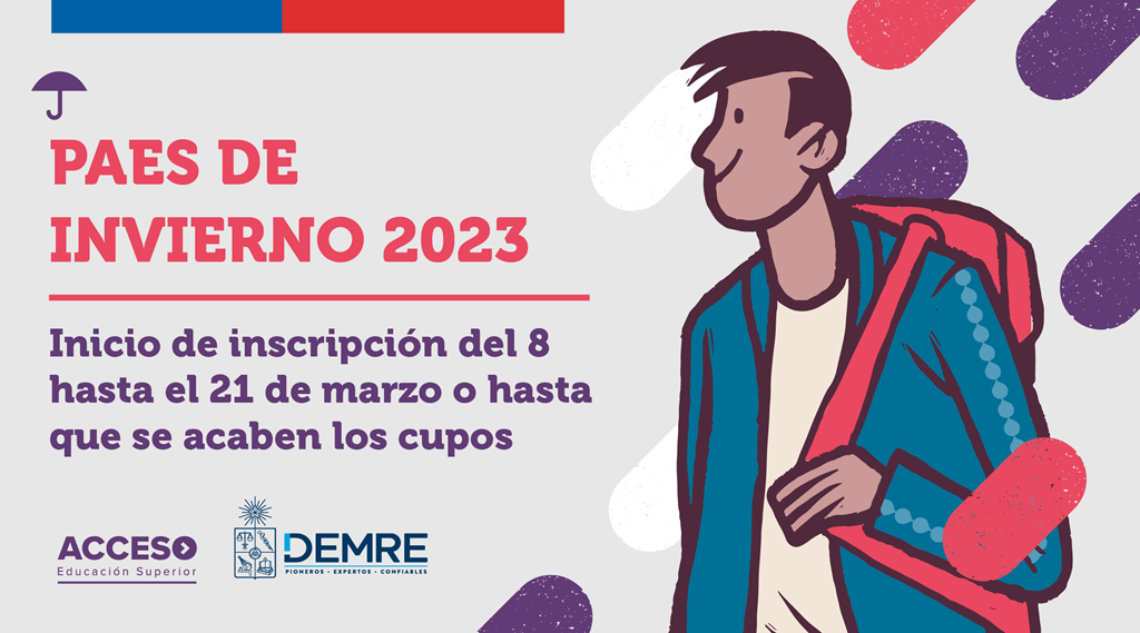 La Subsecretaría de Educación Superior, junto al DEMRE de la Universidad de Chile, abrieron hoy el período de inscripción para la aplicación de la Prueba de Acceso a la Educación Superior (PAES) de Invierno, el que se encontrará habilitado hasta el 21 de marzo, a las 13:00 horas, o hasta que se acaben los cupos disponibles.