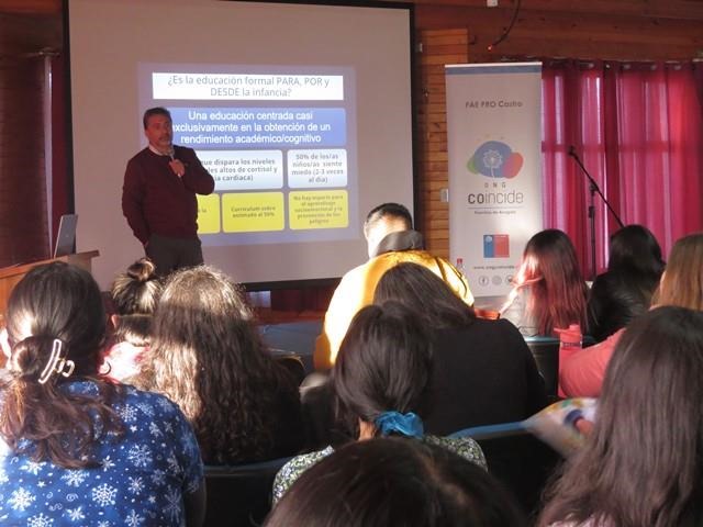 El equipo del Programa Familias de Acogida Especializada FAE Castro, organizó el último seminario del Doctor en Psicología Felipe Lecannelier, como parte de un ciclo que incluyó su presencia en otras tres comunas donde existen proyectos ejecutados por ONG Coincide.
