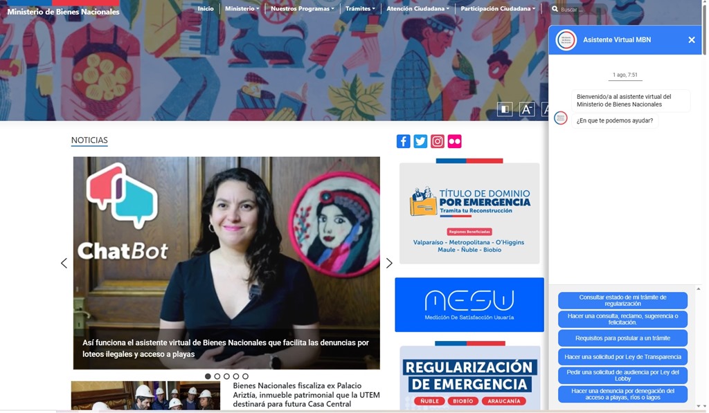 Para facilitar a la ciudadanía el proceso de denuncias en temas como ocupaciones ilegales, loteos irregulares o problemas en el acceso a playas, el Ministerio de Bienes Nacionales habilitó un chat bot en su página web.