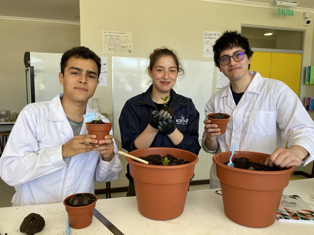 Tomás Jeria, estudiante del liceo Alfredo Barría Oyarzún de Curaco de Vélez, explica que el problema que detectaron es la deforestación del bosque nativo en su isla. “Nuestra solución es una bio-esfera, compuesta principalmente de algas marinas, estiércol de gallina y tierra de hojas, además de una semilla, que busca reforestar y recuperar los suelos dañados”, detalla.