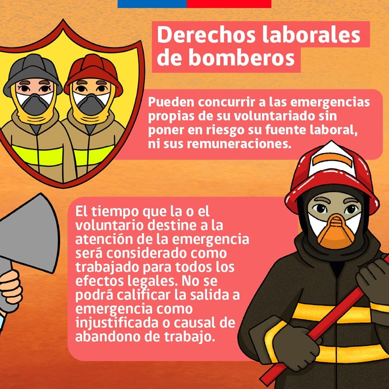 La normativa encargada de proteger la situación laboral de bomberos es la Ley N°20.907, publicada en abril de 2016. Esta regula la situación del trabajador dependiente que se desempeña como voluntario del Cuerpo de Bomberos.