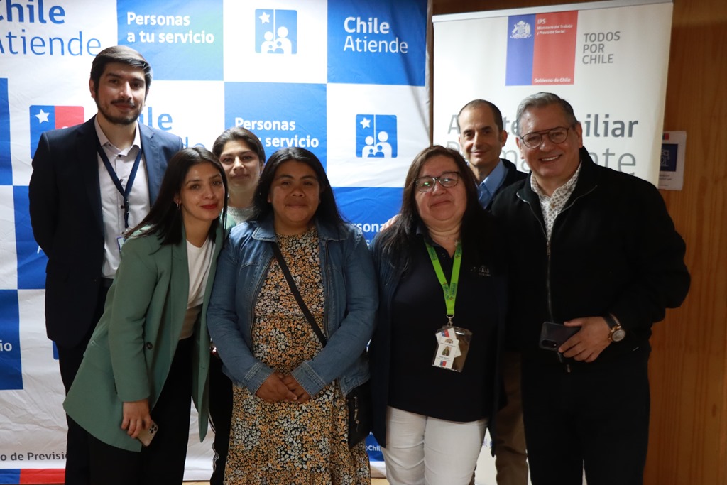 La delegada regional Presidencial, Giovanna Moreira, junto al Seremi del Trabajo y Previsión Social, Ricardo Ebner y el Seremi de Desarrollo Social y Familia, Enzo Jaramillo, sostuvieron un encuentro cercano con beneficiarias del Aporte Familiar Permanente (ex bono marzo) en las instalaciones del ChileAtiende en Puerto Montt. Fue una mañana llena de conversaciones significativas y momentos compartidos en un desayuno.