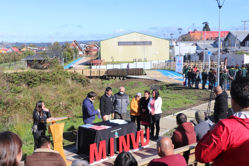 Vecinas y vecinos de Dalcahue, junto a dirigentes sociales y autoridades, inauguraron la obra “Jardín Urbano Ecológico” que fue construida con recursos del Ministerio de Vivienda y Urbanismo (MINVU) en el marco del programa Quiero mi Barrio que se ejecutó junto al municipio local.