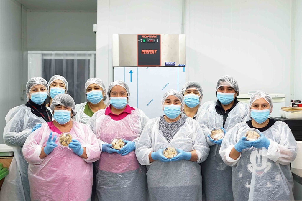 En la oportunidad, las mujeres trabajaron con productos como la almeja, cholga y navajuela, recursos marinos propios de la zona en que desarrollan sus actividades productivas, los que convirtieron en deliciosos alimentos ahumados, congelados y en conserva.