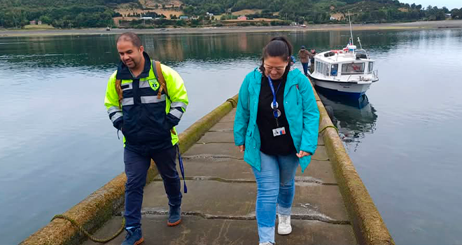Hasta el sector Metahue de las islas Butachauques, en la comuna Quemchi, llegó el jefe del SAMU Chiloé, Sebastián Schmölz, junto a la profesional del subdepartamento de modelo de salud familiar y gestión territorial del Servicio de Salud Chiloé, Kissy Bórquez, y representantes de la delegación presidencial provincial, del municipio y la Armada de Chile para abordar diversas temáticas de salud.