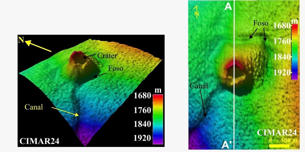 A unos 86 kilómetros al oeste de Chiloé y a 1.800 metros de profundidad, los científicos descubrieron una estructura circular con un gran cráter central, a la que denominaron Volcán de Lodo de Cucao. El hallazgo fue liderado por el académico Cristian Rodrigo, junto a Fernanda Ruiz, Nitza Garrido y Ximena Contardo, de la carrera de Geología UNAB, sede Viña del Mar.