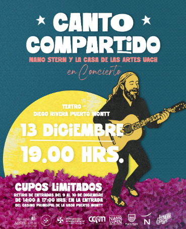 La Universidad Austral de Chile Sede Puerto Montt, a través de su Casa de las Artes y su Dirección de Vinculación con el Medio, invita a la comunidad universitaria y a la ciudadanía a participar del concierto “Canto Compartido – Nano Stern y la Casa de las Artes UACh en Concierto”.