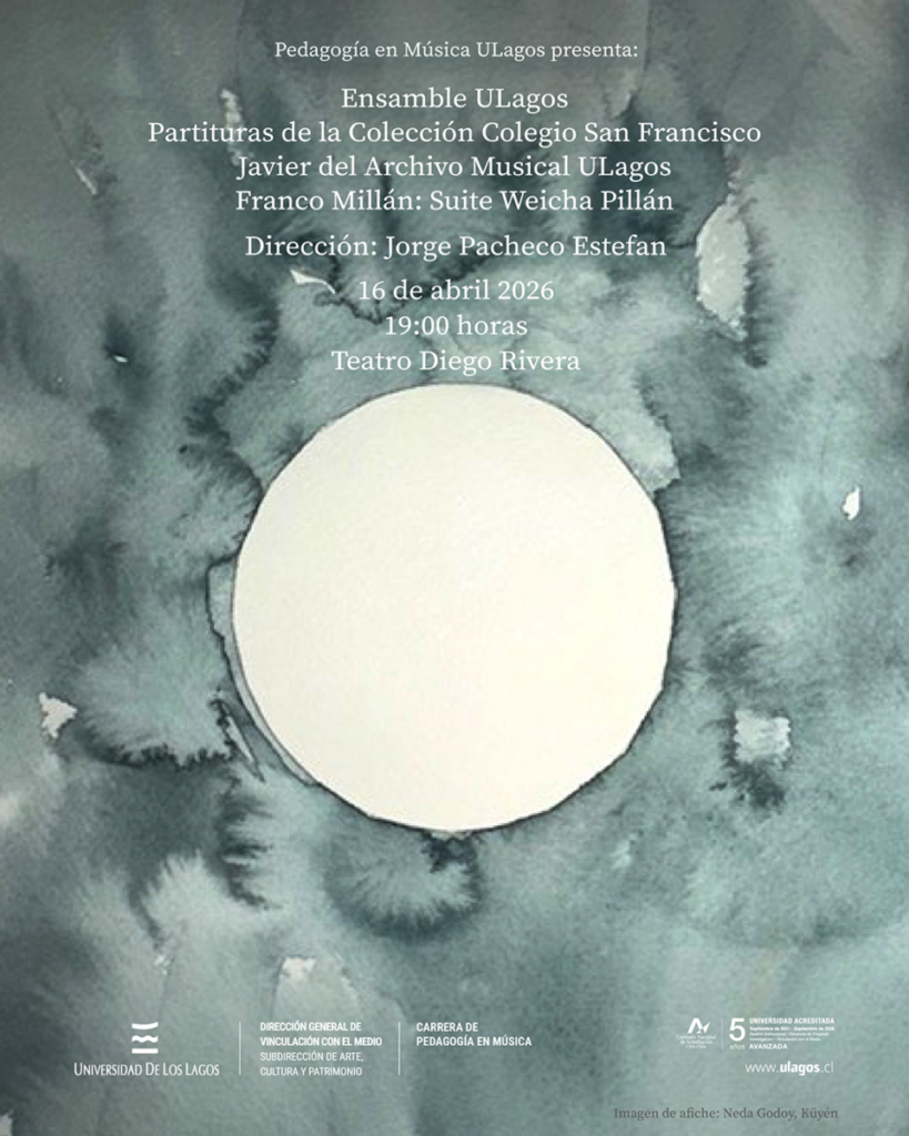 La cita del concierto del Ensamble ULagos, será el próximo jueves 16 de abril a las 19 horas en el Teatro Diego Rivera en Puerto Montt. La entrada es gratuita para toda la comunidad.